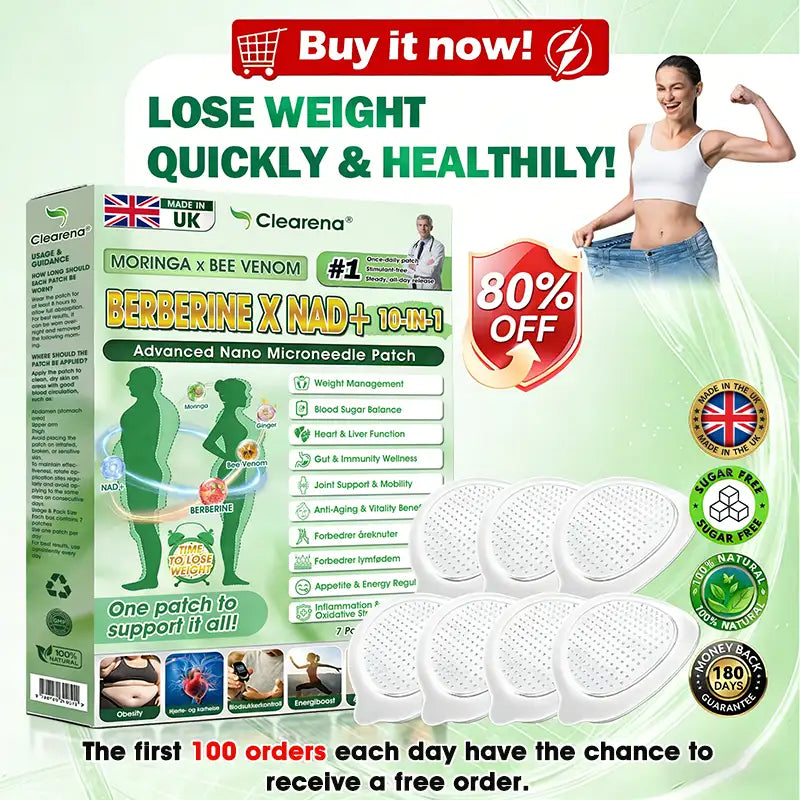 Clearena® ððšð«ð¢ð§ð ð · ððð ððð§ðšðŠ Â· ððð«ððð«ð¢ð§ð à ððð+ 10-ð¢ð§-ð ðð±ðð®ð»ð°ðð ððð£ð€ ðððð§ð€ð£ðððð¥ð ððððð  was developed through more than 20 years of research by a multidisciplinary team of over 30 experts. Each patch incorporates an ultra-fine microneedle architecture measuring approximately one-seventh the thickness of a human hair, designed to ensure a smooth and virtually painless application. The formulation contains highly concentrated natural bioactive compounds, up to 20-fold higher than conventional market levels, including Moringa and Berberine, which act synergistically to support healthy glycemic responses, appetite regulation, and lipid metabolism, thereby promoting gradual and sustainable weight management. Enriched with NAD+, the patch further supports skin firmness and structural resilience during body-weight fluctuations, helping maintain a lean appearance without compromising comfort or aesthetics. Additional high-efficacy components contribute to the support of immune function, digestive health, gut balance, womenâs health, daily energy levels, and fatigue reduction, collectively promoting a more youthful and resilient physiological state from within. Manufactured in  facilities that comply with both Australia and EU quality standards, this needle-free, science-driven solution provides a safe and comprehensive approach to effective weight management and long-term metabolic health, designed to work in harmony with the body rather than against it.